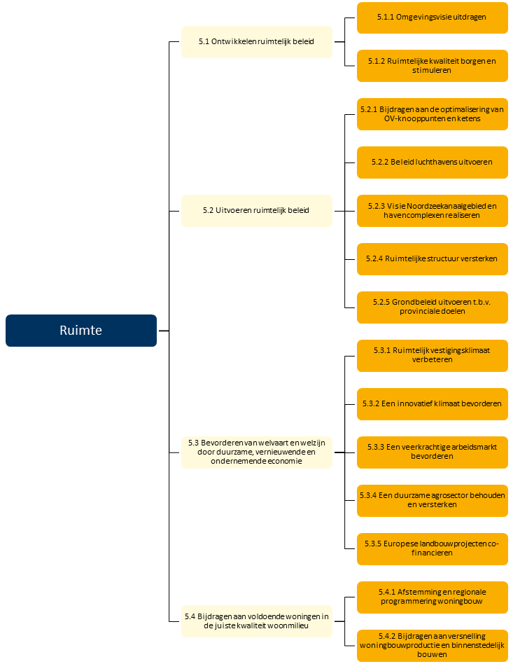 De provincie zorgt samen met andere overheden voor een goede ruimtelijke inrichting van de leefomgeving. Duurzaam ruimtegebruik, ruimtelijke kwaliteit en klimaatbestendigheid zijn daarvoor de leidende principes. De provincie streeft een aantrekkelijke leefomgeving na, waar de inwoners van Noord-Holland op een zo prettig mogelijke manier kunnen wonen, werken en recreëren. Diverse functies vragen om ruimte in Noord-Holland. De provincie bekijkt deze zaken in samenhang, maakt ruimtelijk-economisch beleid en coördineert bij vraagstukken die de gemeentegrenzen overstijgen.