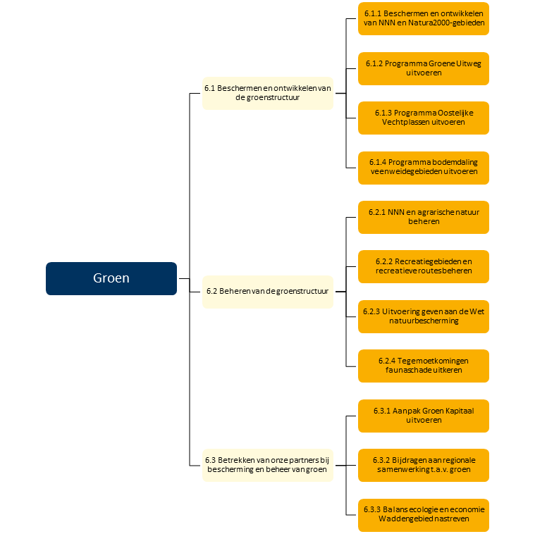 Tegelijkertijd was in 2020 ook de uitvoering van het coalitieakkoord ‘Duurzaam doorpakken!’ vol op stoom. Nieuwe beleidsvisies zagen het licht, zoals de Realisatiestrategie NNN (medio 2020 vastgesteld door PS), het Masterplan biodiversiteit, de Voedselvisie (beide recent vastgesteld door Provinciale Staten) en de Visie Recreatie & toerisme (in concept gereed). Het Ministerie van Landbouw, Natuur en Voedselkwaliteit (LNV) presenteerde een Bossenstrategie en stelde middelen beschikbaar voor stikstofafname en natuurherstel (Programma Natuur-gelden), Vitaal Platteland Laag Holland en het tegengaan van bodemdaling. De uitvoering van de gebiedsprogramma’s in de Oostelijke Vechtplassen, de Groene Uitweg en het Waddengebied waren in volle gang. Een nieuw gebiedsprogramma Laag Holland wordt in de steigers gezet. De integrale, gebiedsgerichte aanpak wordt hèt instrument om de vele opgaven in het landelijk gebied uit te voeren. Immers, natuurrealisatie is niet langer denkbaar zonder óók aandacht te hebben voor de grotere behoefte aan recreatieve mogelijkheden. Verbetering van de biodiversiteit en waterkwaliteit lukt niet zonder de stikstof- en fosfaatuitstoot vanuit de agrarische sector te verminderen. Bodemdaling kan niet worden tegengegaan zonder keuzes te maken over waterpeil, natuurdoelen en de toekomst van de betrokken grondeigenaren. Het wonen in steden blijft populair, maar mensen willen in hun vrije tijd de natuur in. Via een gebiedsgerichte aanpak moet een oplossing voor deze puzzel gevonden worden. In 2020 zagen we dat deze aanpak zijn vruchten afwerpt: er worden mooie successen geboekt, zoals uit de toelichting in dit begrotingshoofdstuk mag blijken.