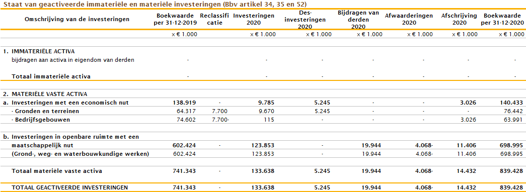 In 2020 heeft een re-classificatie van de grond onder het bedrijfspand Houtplein plaatsgevonden. Deze stond onder bedrijfsgebouwen, maar is in 2020 verantwoord onder de Gronden en - terreinen.
